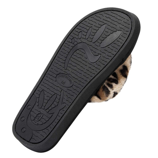 JOINFREE Women's Plush Thong Slippers Fluffy Slippers Slides Furry Spa Shoes for Women Leopard Gold 7.5-8.5 M US