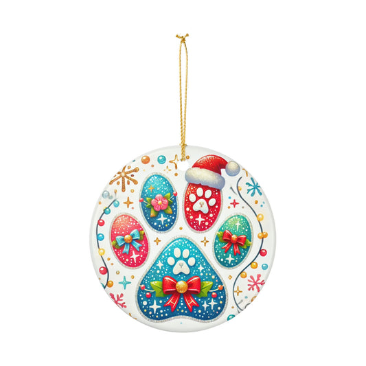 Festive Paw Print - Ceramic Decoration Ornament, (1pc)