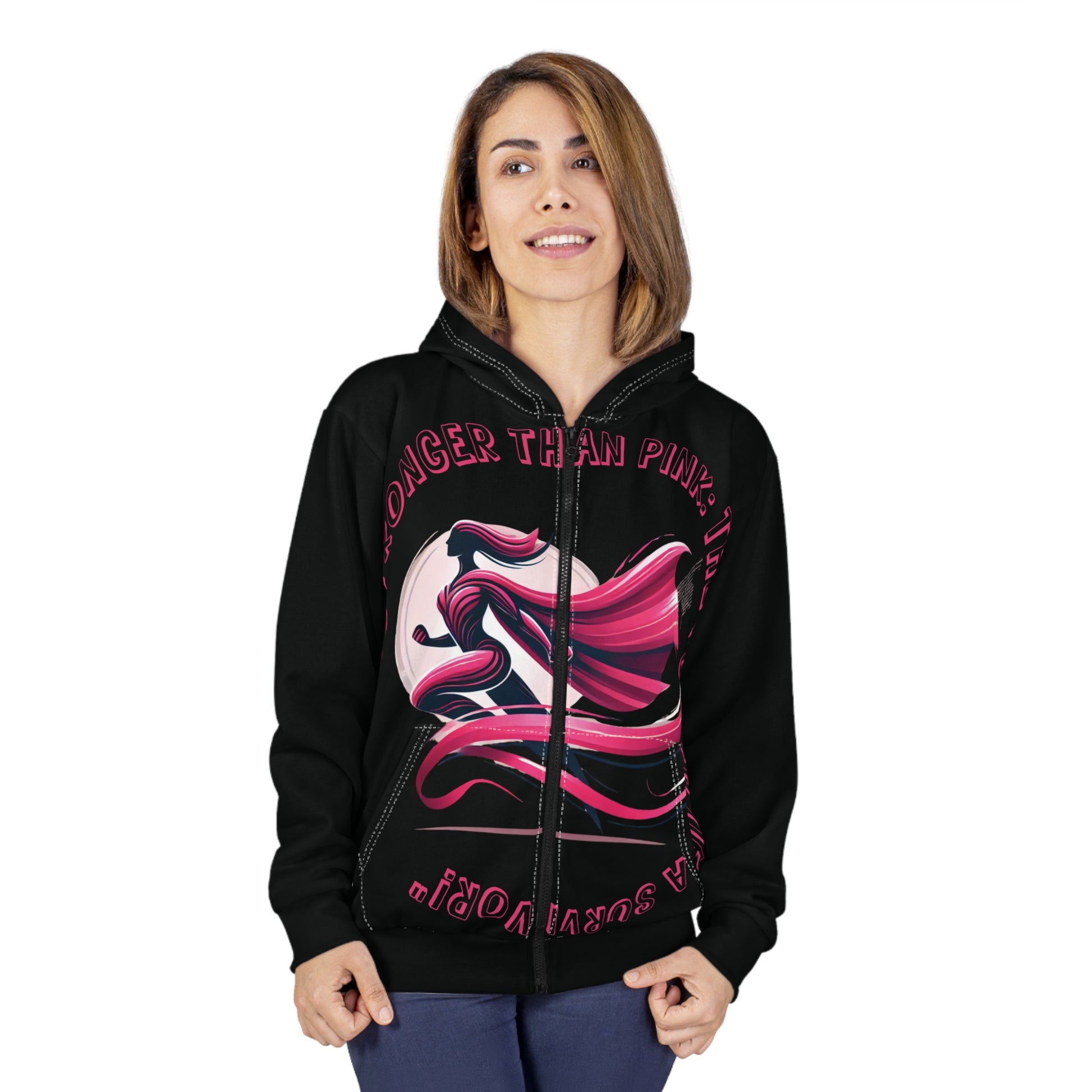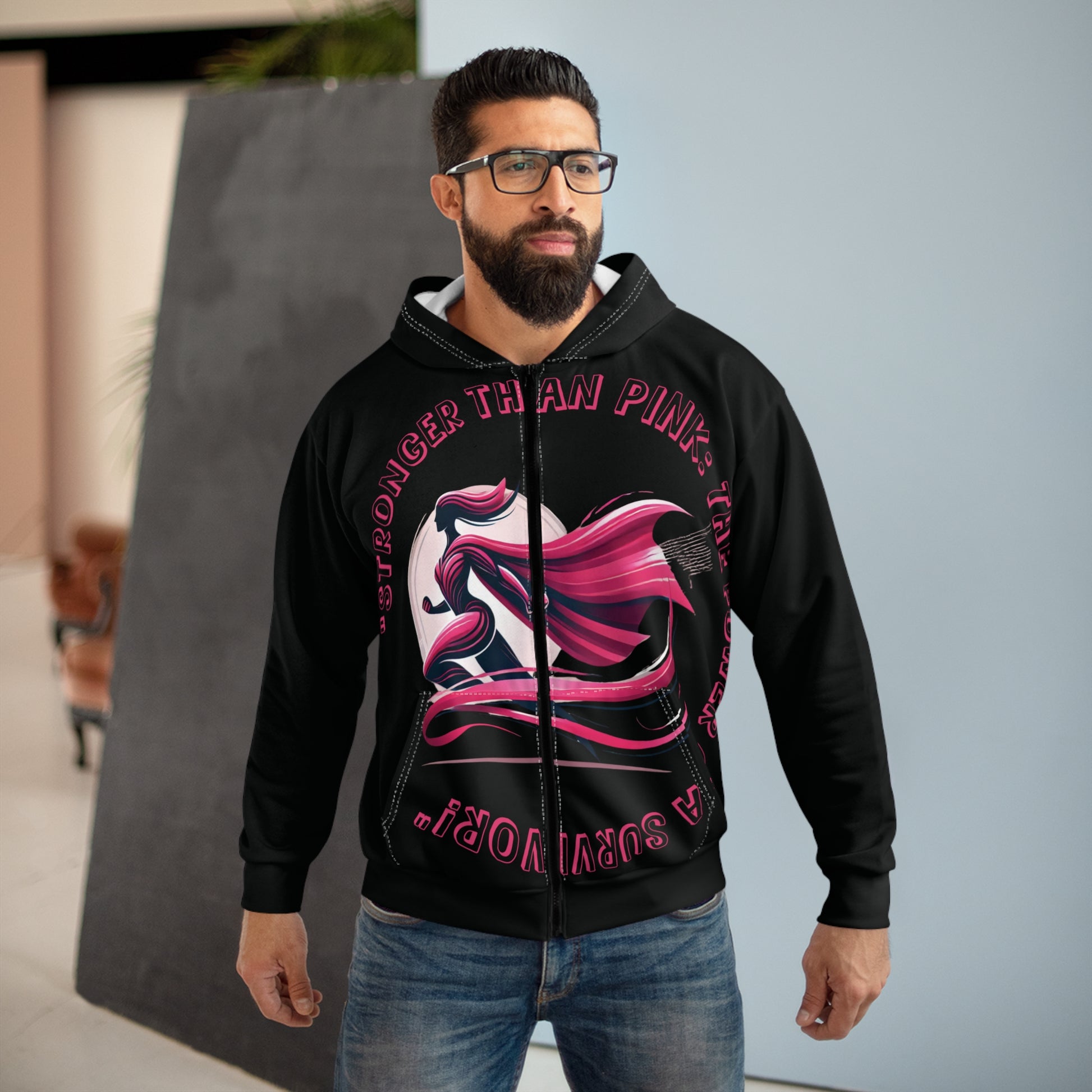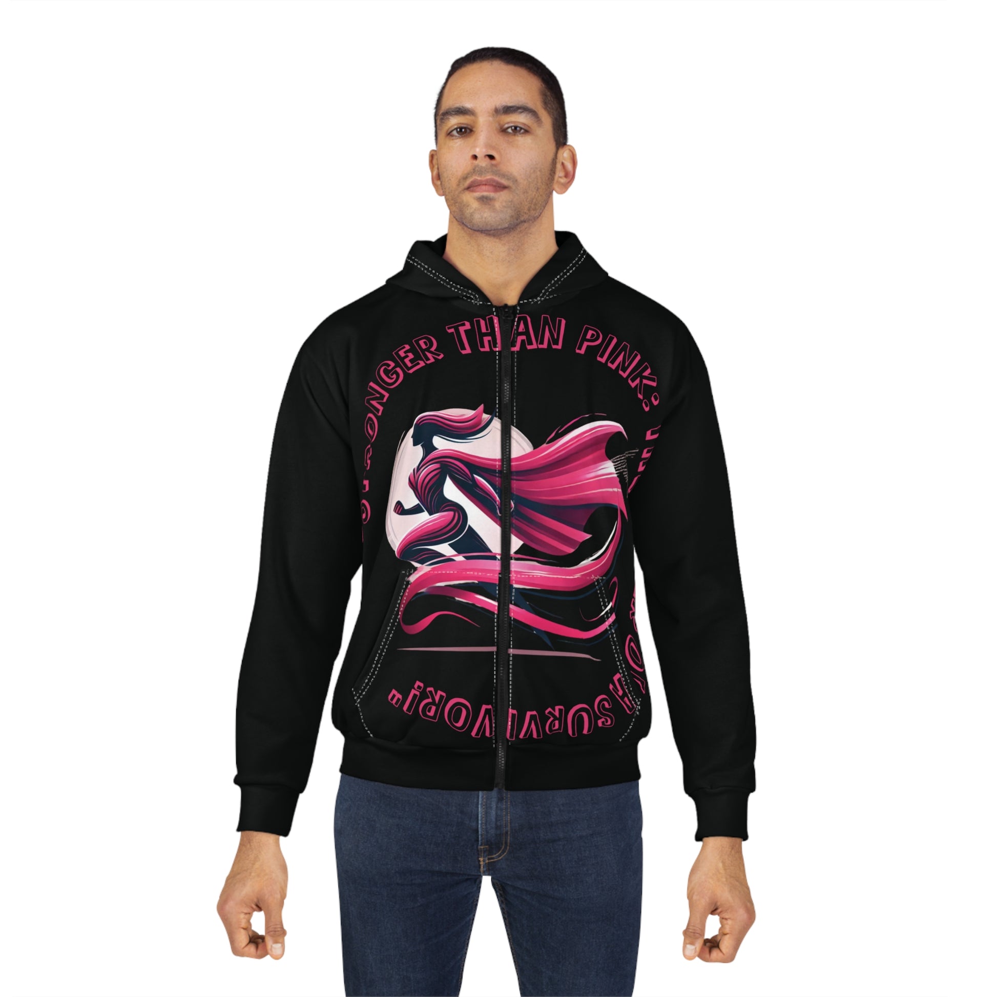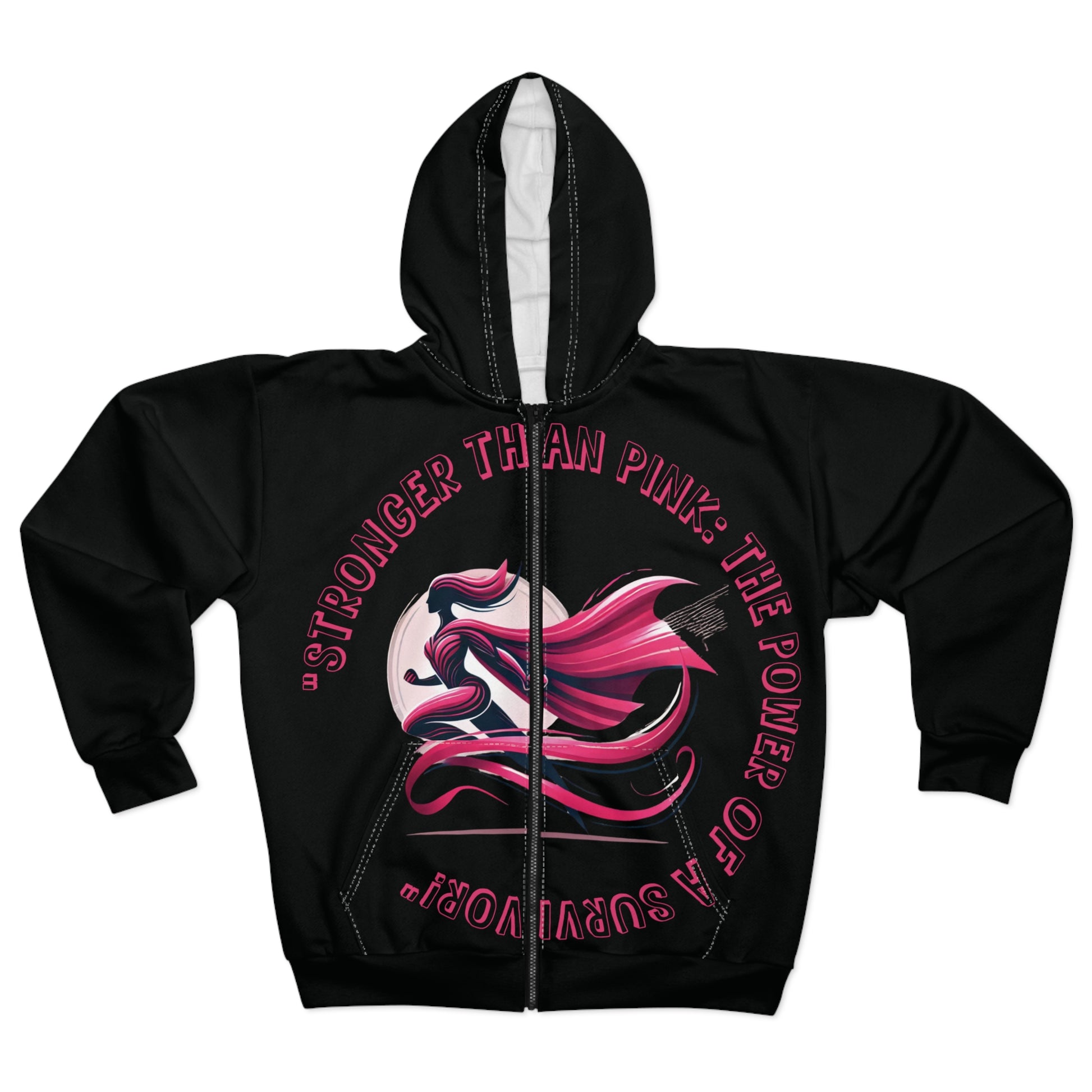 Wrap yourself in warmth and empowerment with our Stronger Than Pink: The Power of a Survivor AOP zip hoodie. Designed for those who embody resilience and courage, this hoodie makes a bold statement while keeping you cozy during the cold months. Whether you're braving chilly days or simply relaxing at home, this hoodie is the ultimate blend of comfort and inspiration. It’s your perfect pick this winter—because survivors are stronger than anything.