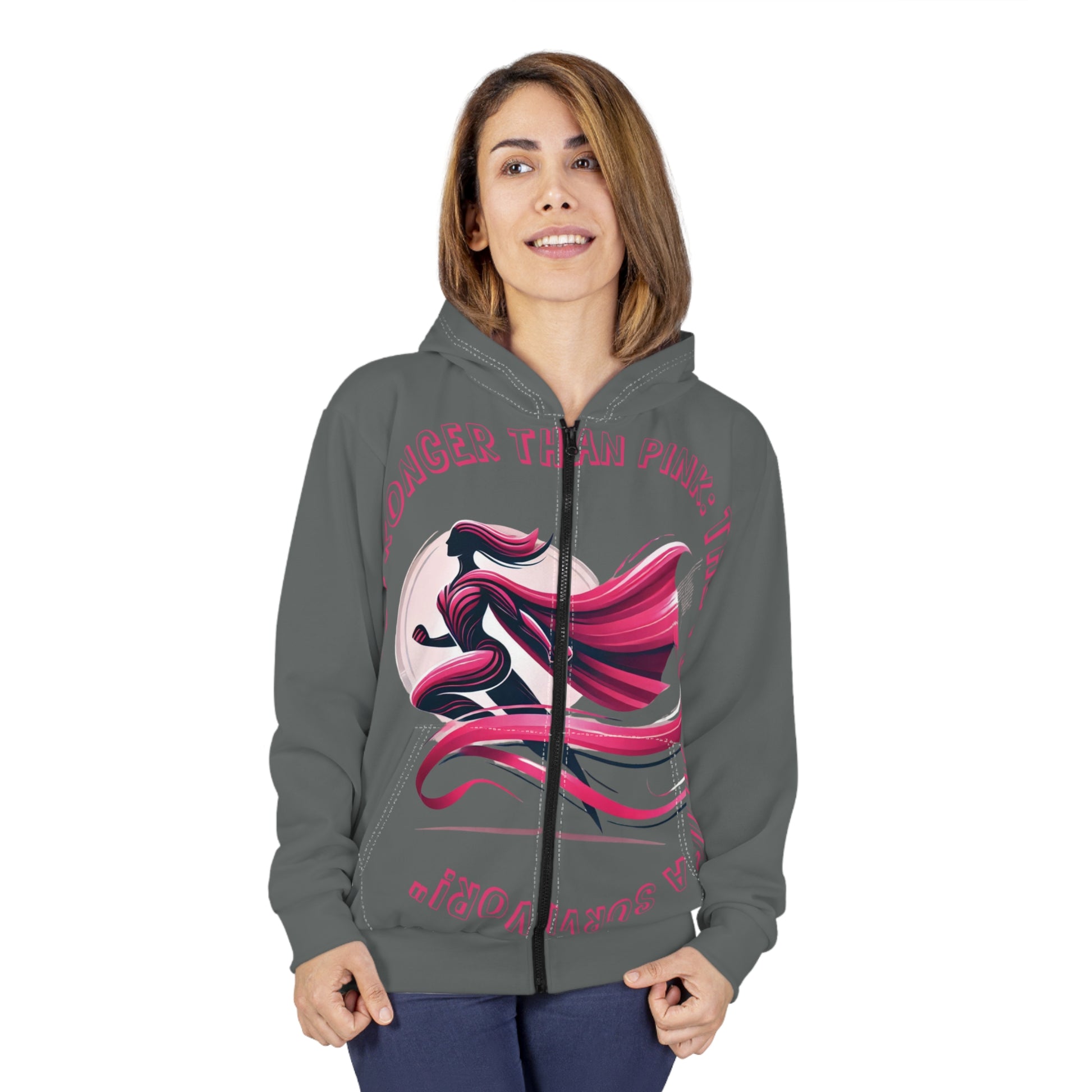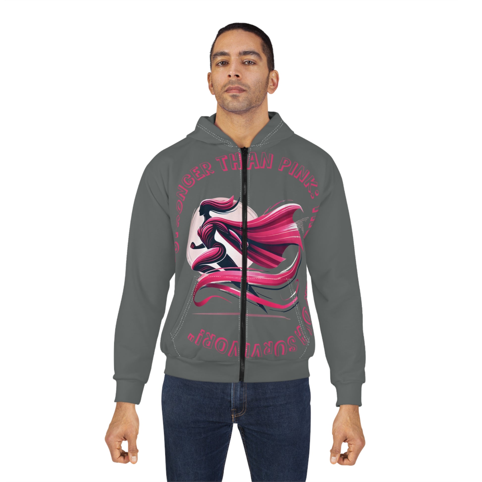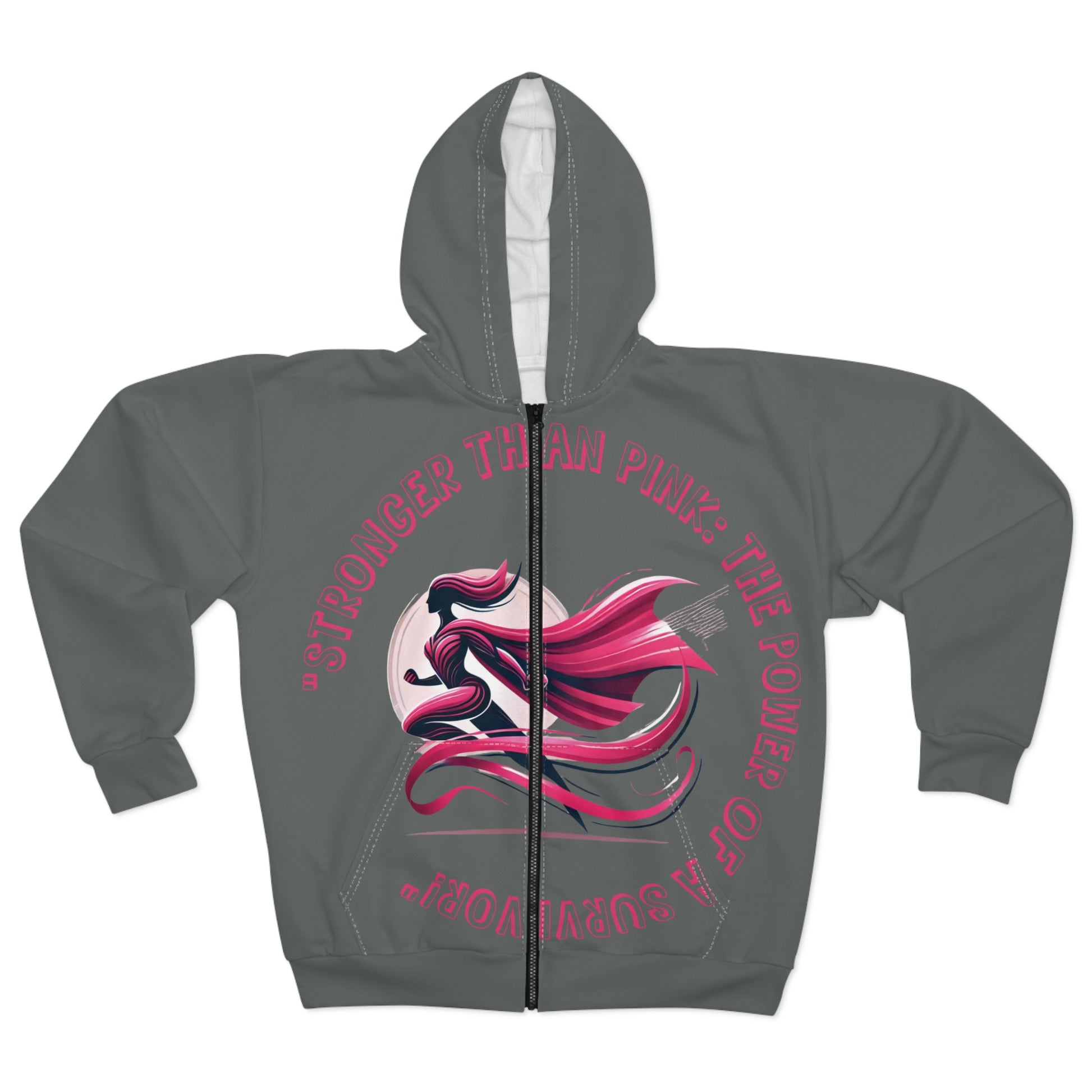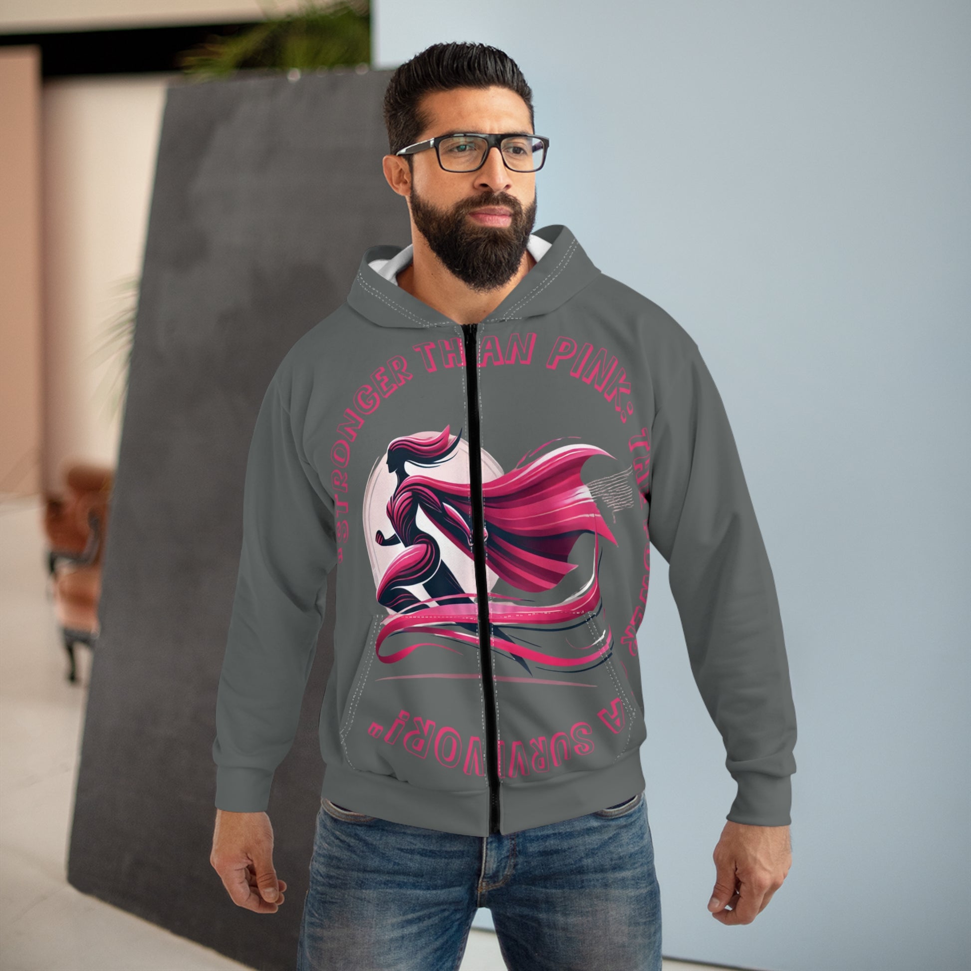 Wrap yourself in warmth and empowerment with our Stronger Than Pink: The Power of a Survivor Unisex Zip Hoodie (AOP). Designed for those who embody resilience and courage, this hoodie is more than just an outfit—it's a bold statement of strength and hope.