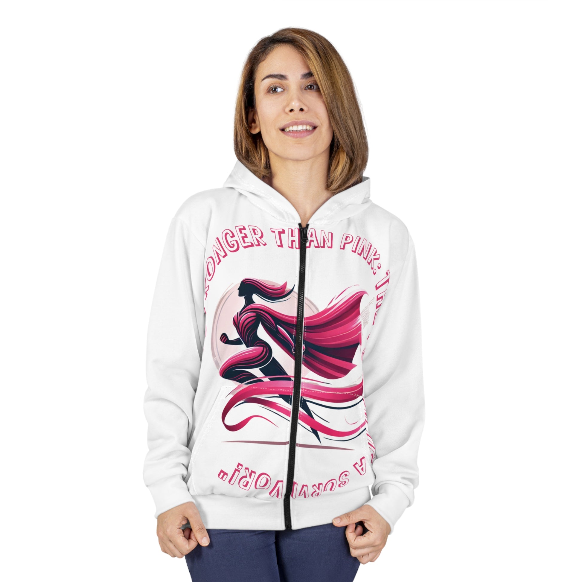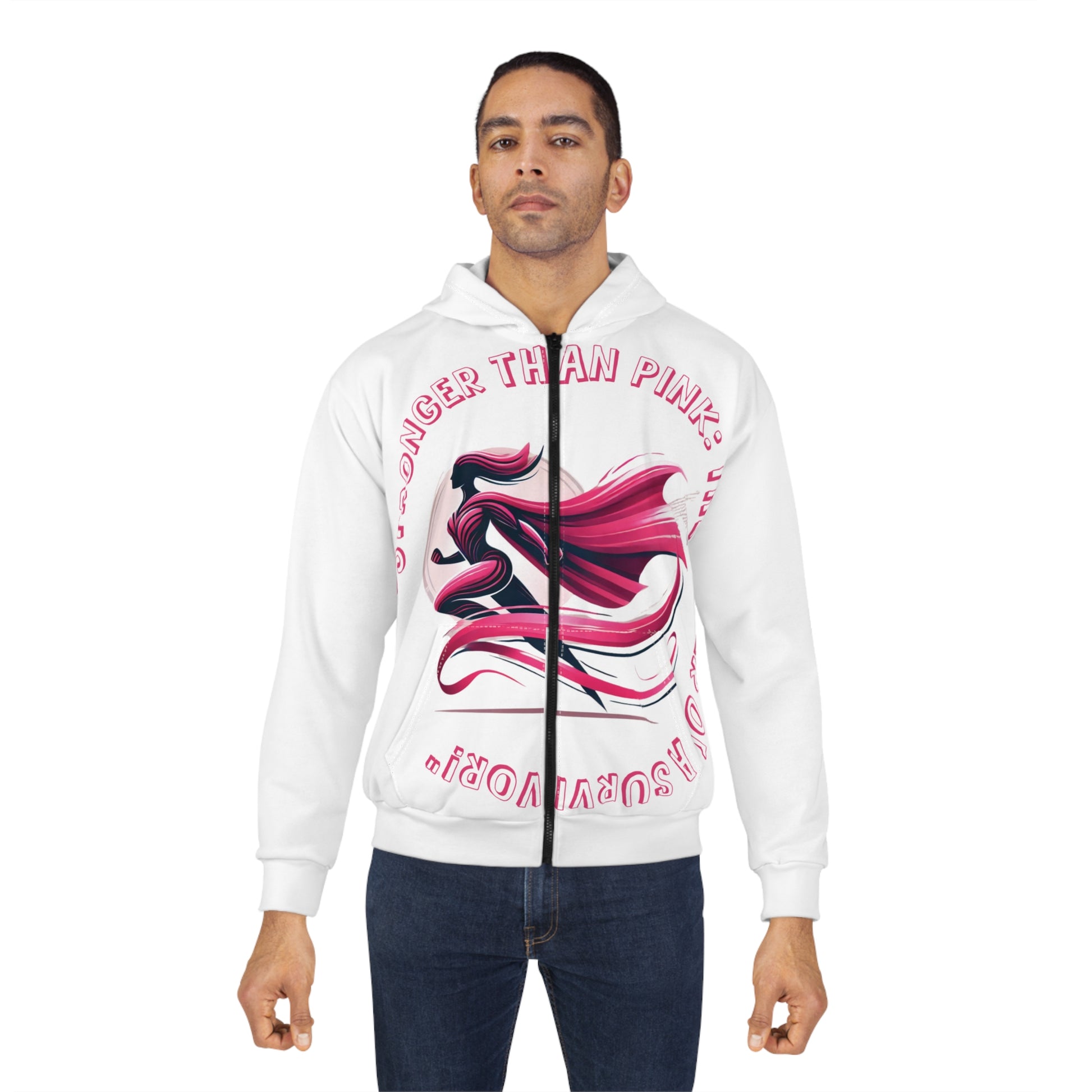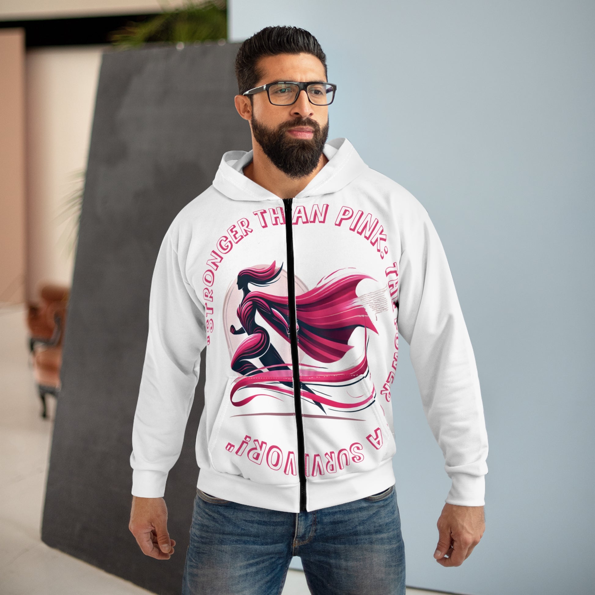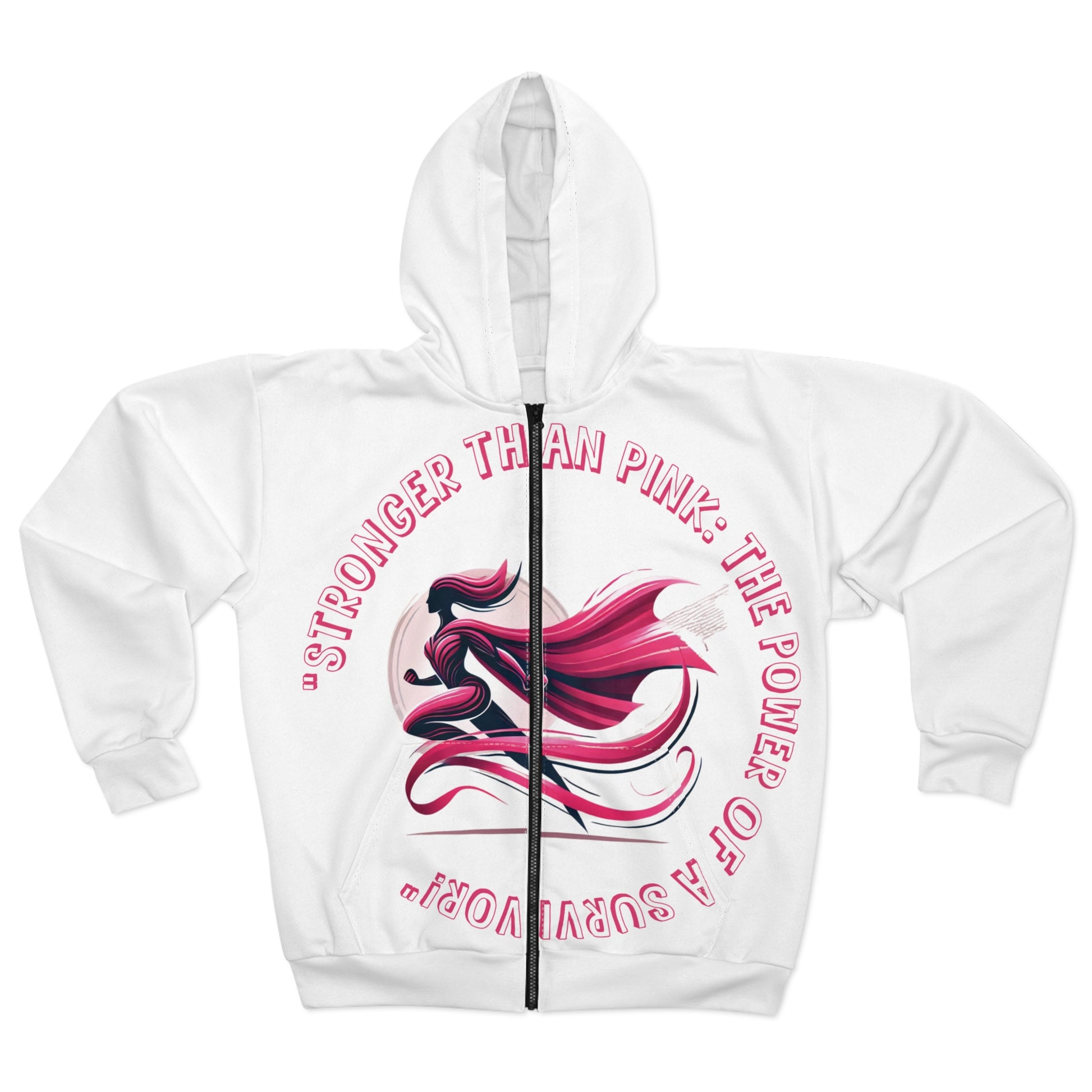 Wrap yourself in warmth and empowerment with our Stronger Than Pink: The Power of a Survivor Unisex Zip Hoodie (AOP). Designed for those who embody resilience and courage, this hoodie is more than just an outfit—it's a bold statement of strength and hope.