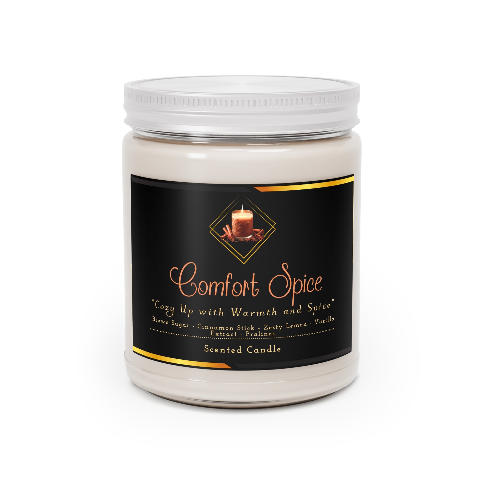 Indulge in the essence of cozy comfort with the Comfort Spice Scented Candle, where you can "Cozy Up with Warmth and Spice". This 9oz candle combines the rich, sweet notes of brown sugar, cinnamon stick, zesty lemon, vanilla extract, and praline, creating a warm and inviting fragrance perfect for any space. Made with a 100% natural soy wax blend and featuring a cotton wick, this candle offers a clean, long-lasting burn. With an average burn time of 50-60 hours, it's the ideal way to add a touch of warmth and sweetness to your home, creating the perfect setting for relaxation and comfort.