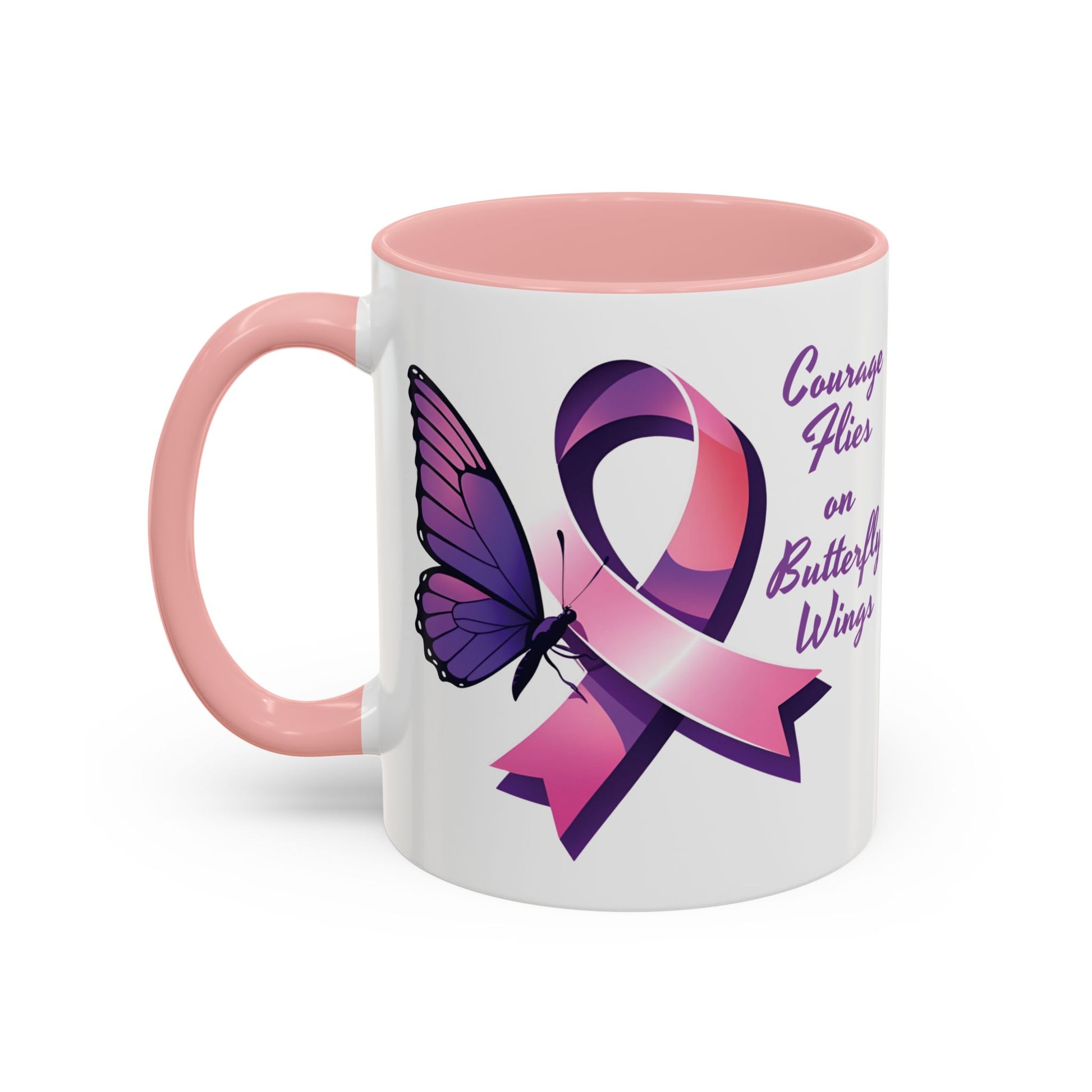Courage Flies on Butterfly Wings Accent Mug – Breast Cancer Awareness Edition