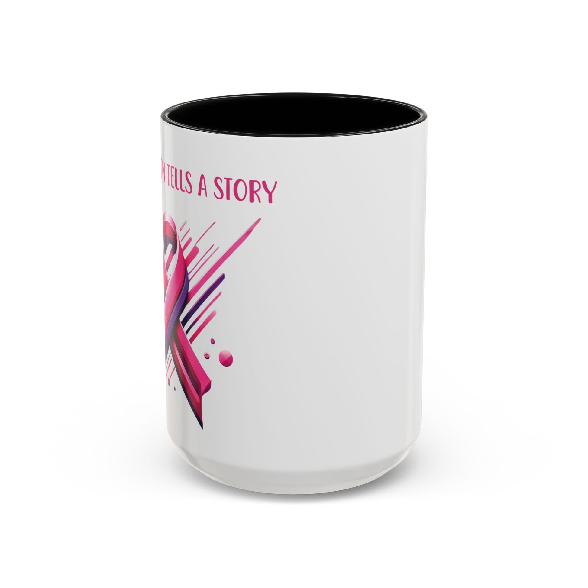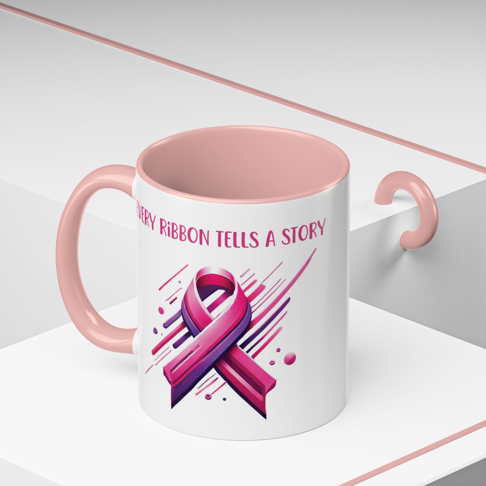 Every Ribbon Tells A Story Accent Mug – Breast Cancer Awareness Edition