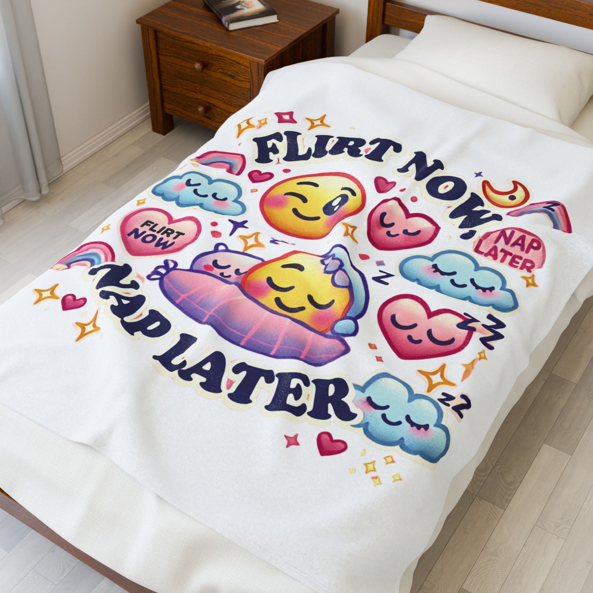 Flirt Now, Nap Later - Velveteen Plush Blanket