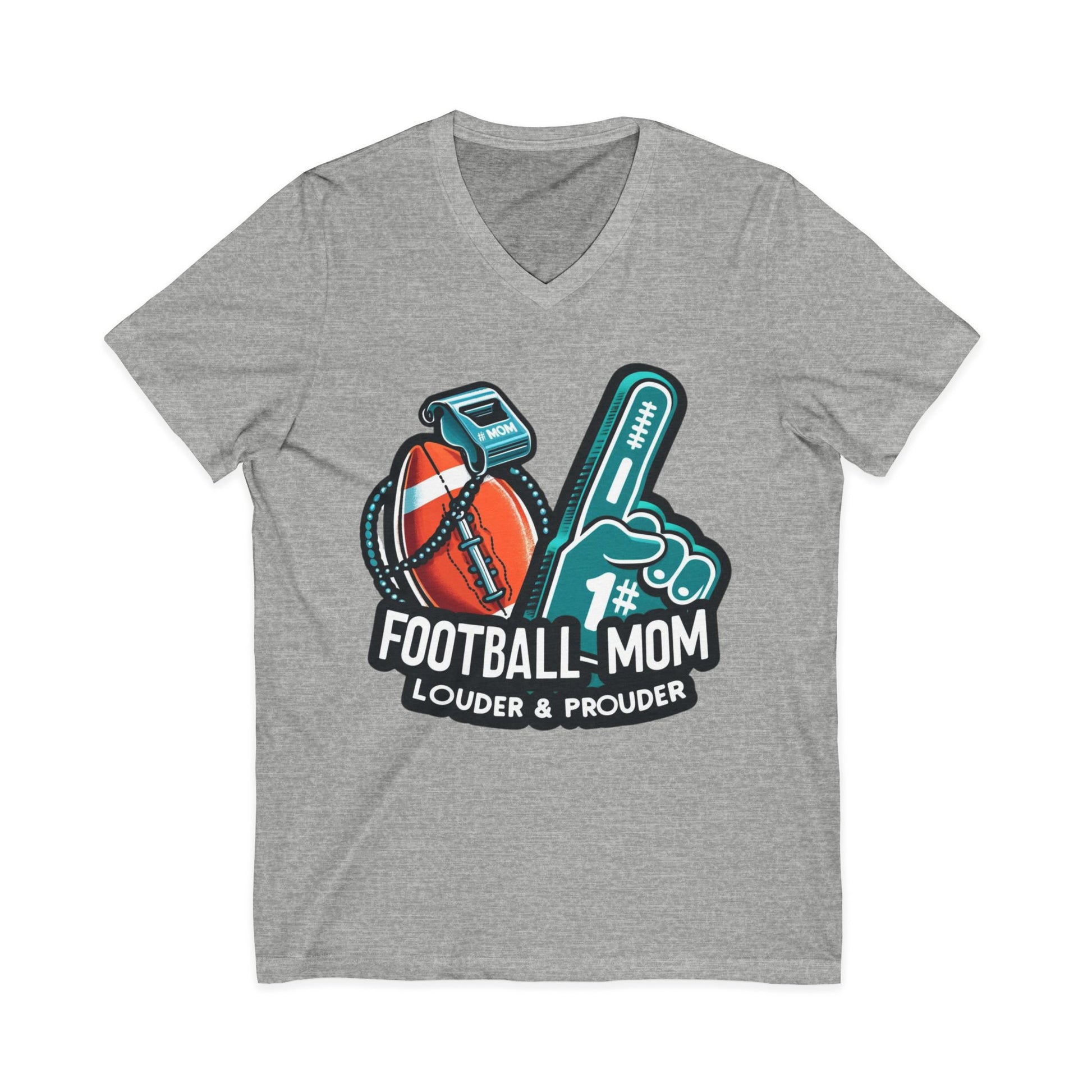 Football Mom - Louder & Prouder - Unisex Jersey Short Sleeve V-Neck Tee