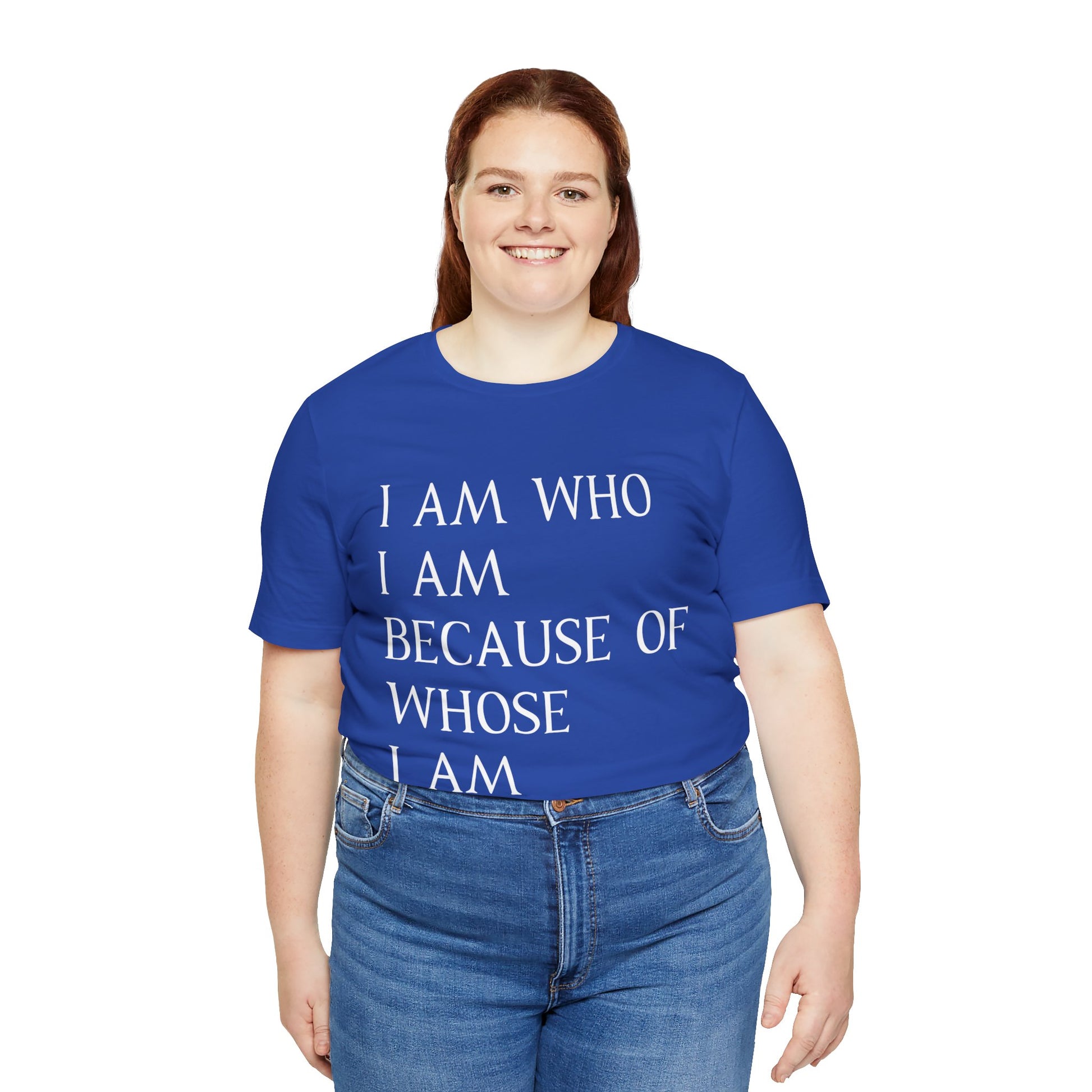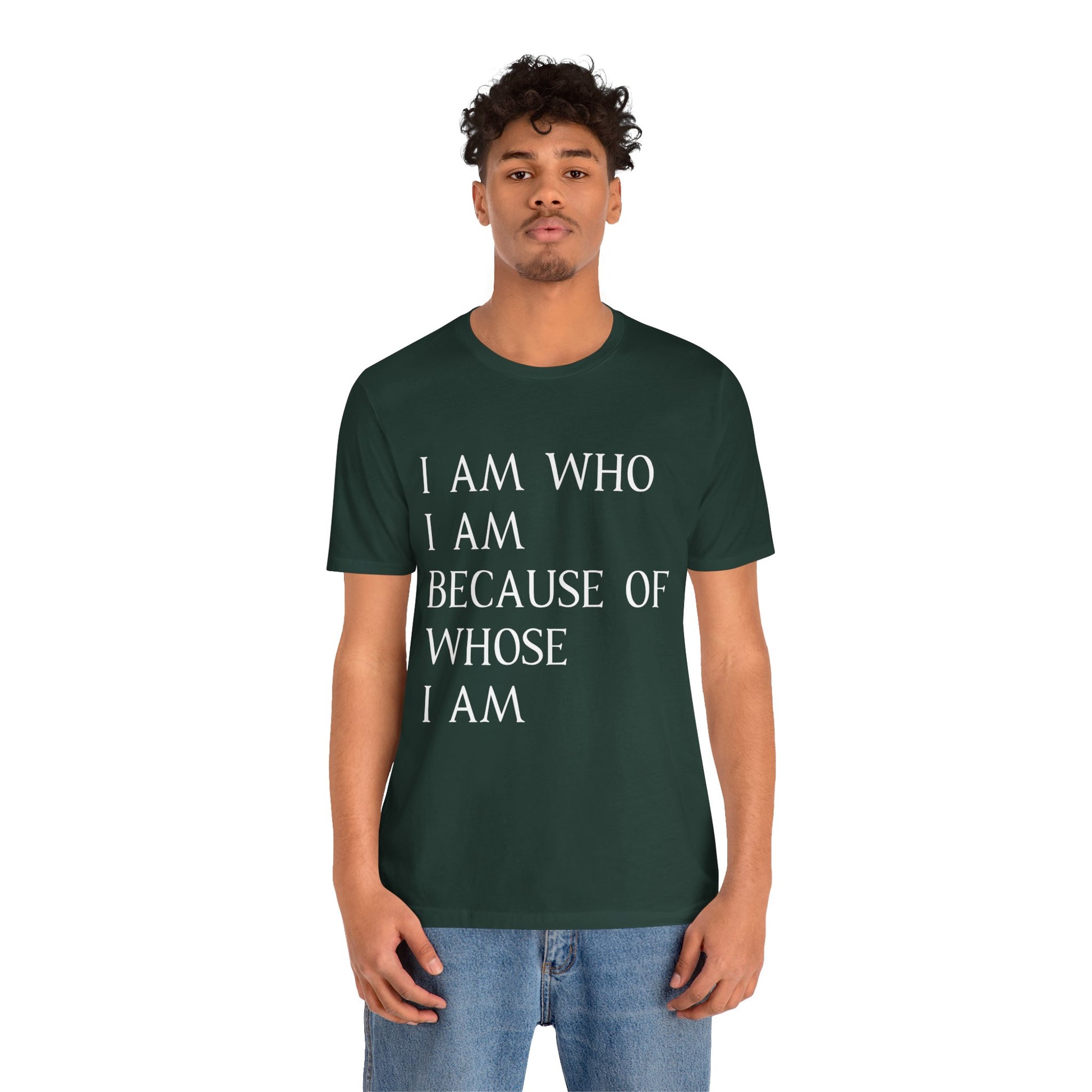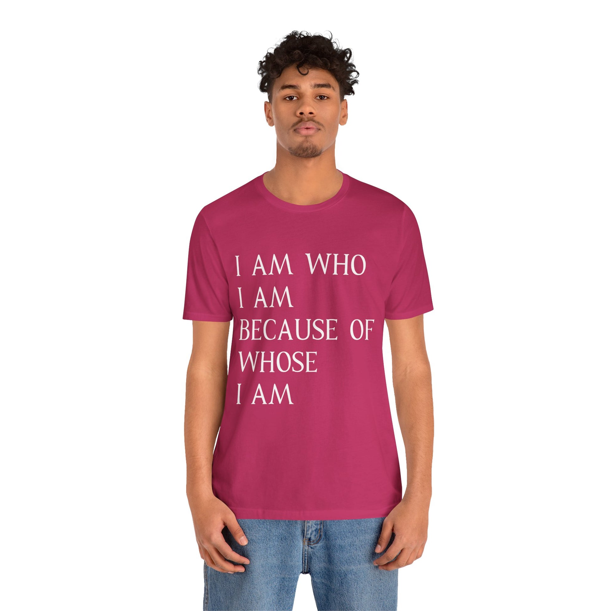 "I Am Who I Am, Because Of Whose I Am" - Unisex Jersey Short Sleeve Tee