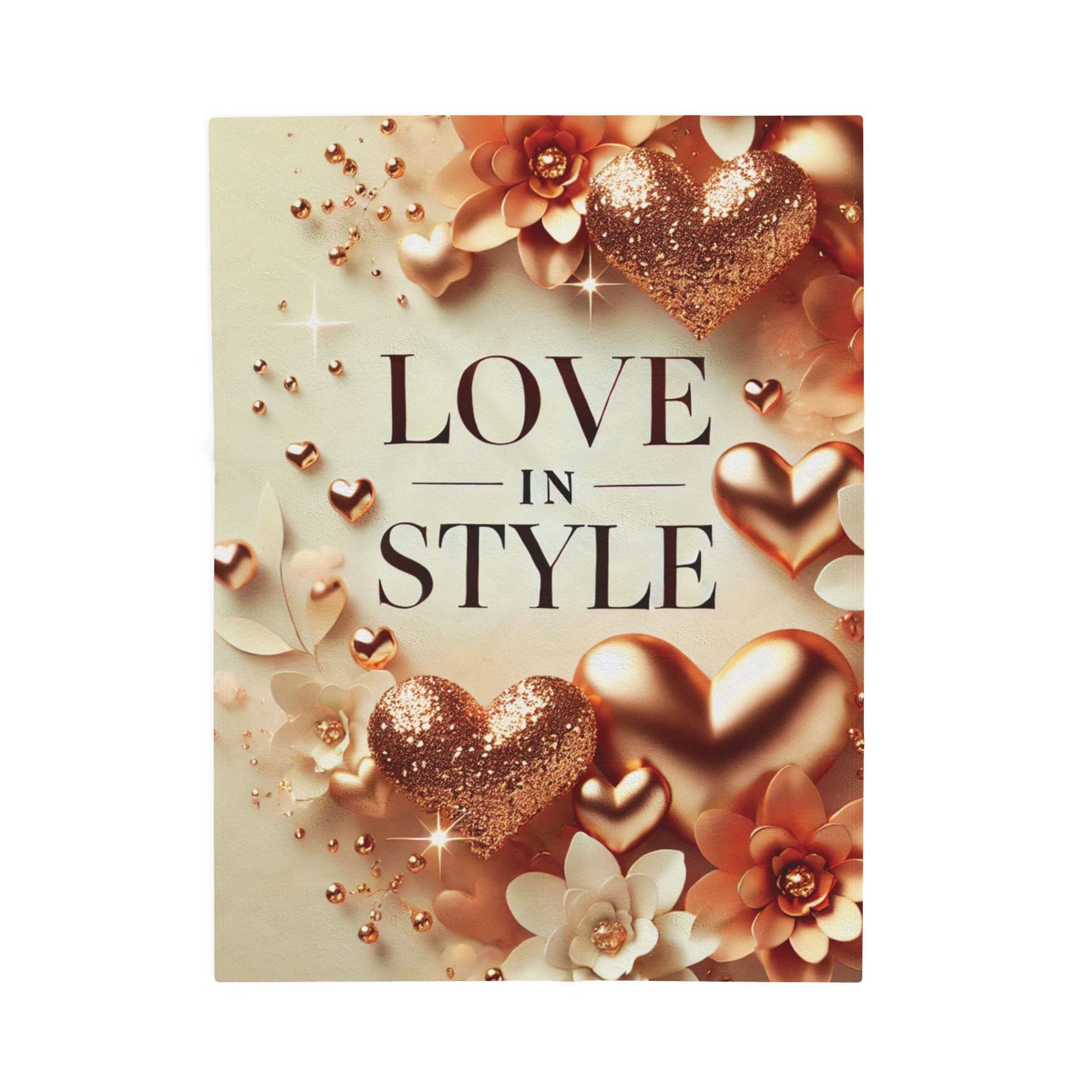 Wrap yourself in warmth and elegance with the Love In Style Velveteen Plush Blanket! Designed for those who believe in loving boldly and living stylishly, this plush blanket adds a cozy and chic touch to any space. Its ultra-soft velveteen fabric is perfect for snuggling up on chilly nights, making it a must-have for your home or a thoughtful gift for someone special. Luxuriously soft velveteen fabric for ultimate comfort. Stylish one-sided "Love In Style" print for a chic touch. Available in three sizes: 30x40", 50x60", 60x80". Perfect for home décor, cozy nights, and heartfelt gifts
