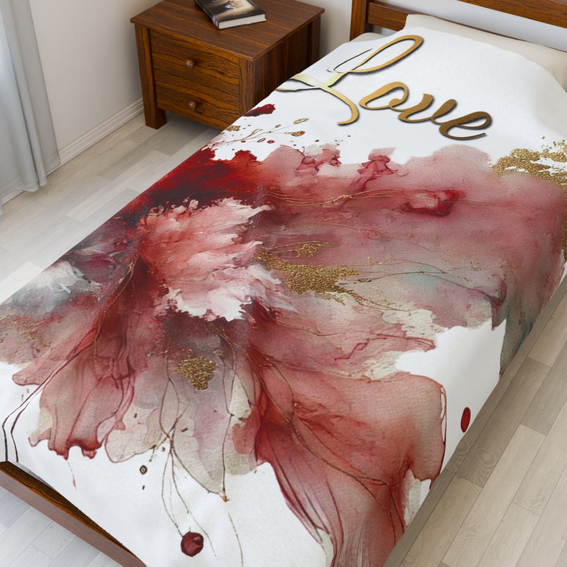 Snuggle up with love and comfort with the Love Velveteen Plush Blanket – because love should always be warm and cozy!