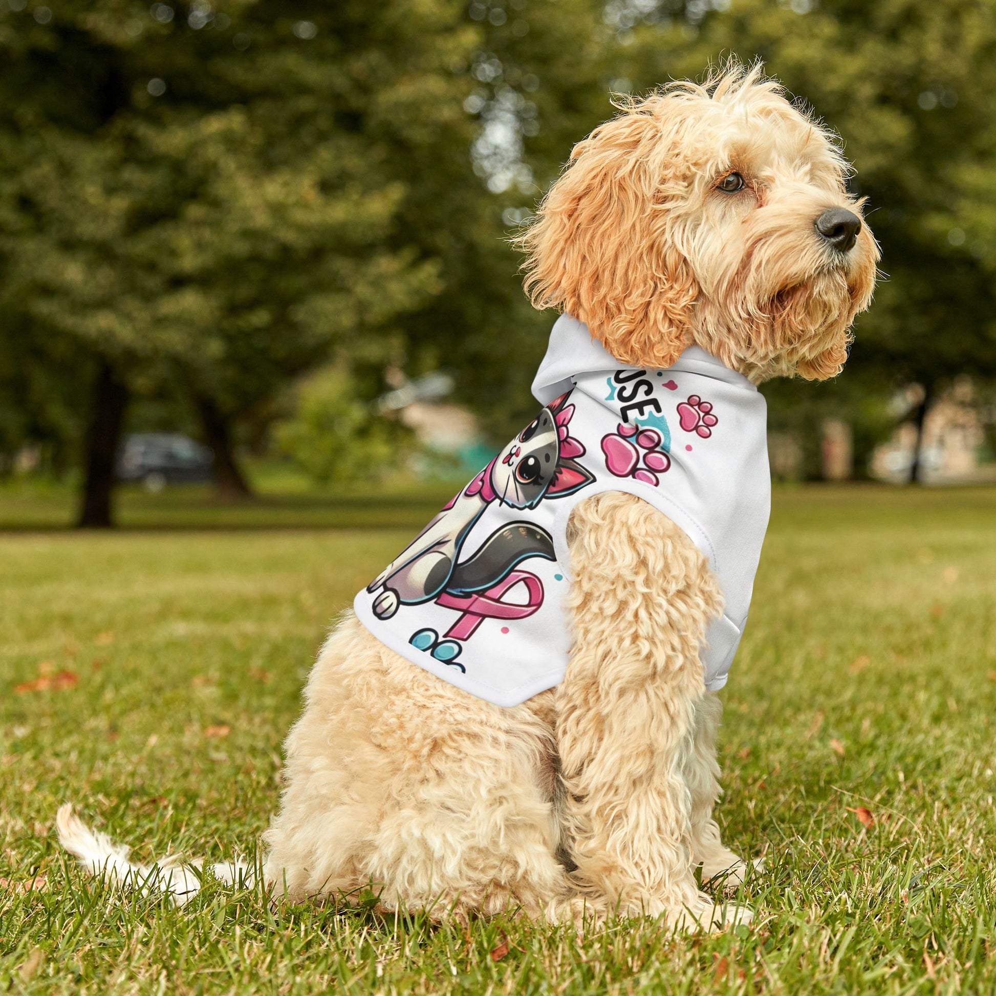 Dress your pet in the “Paws for the Cause” hoodie to show love, support, and awareness—because when our pets join the cause, every paw print makes an impact. 🐾💖