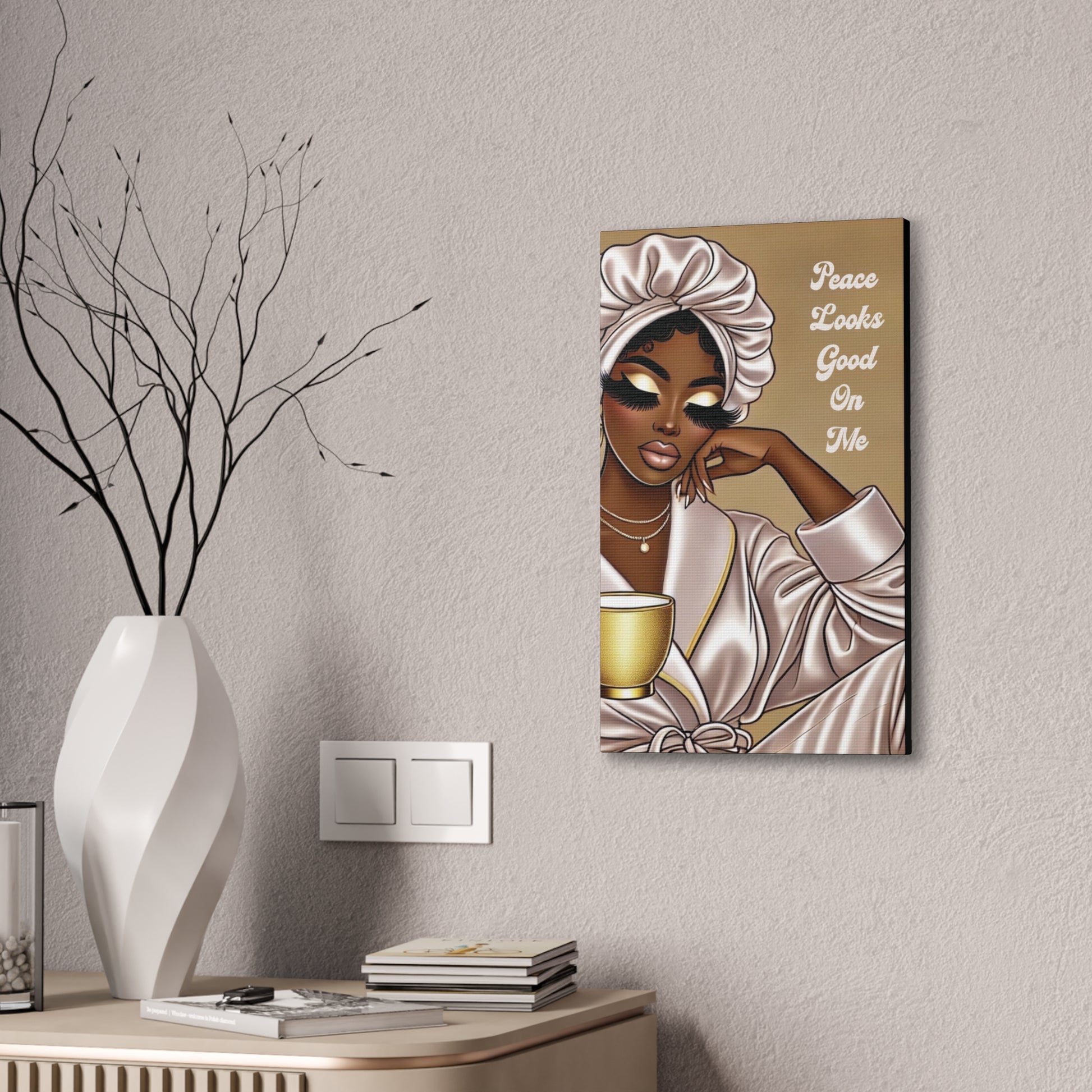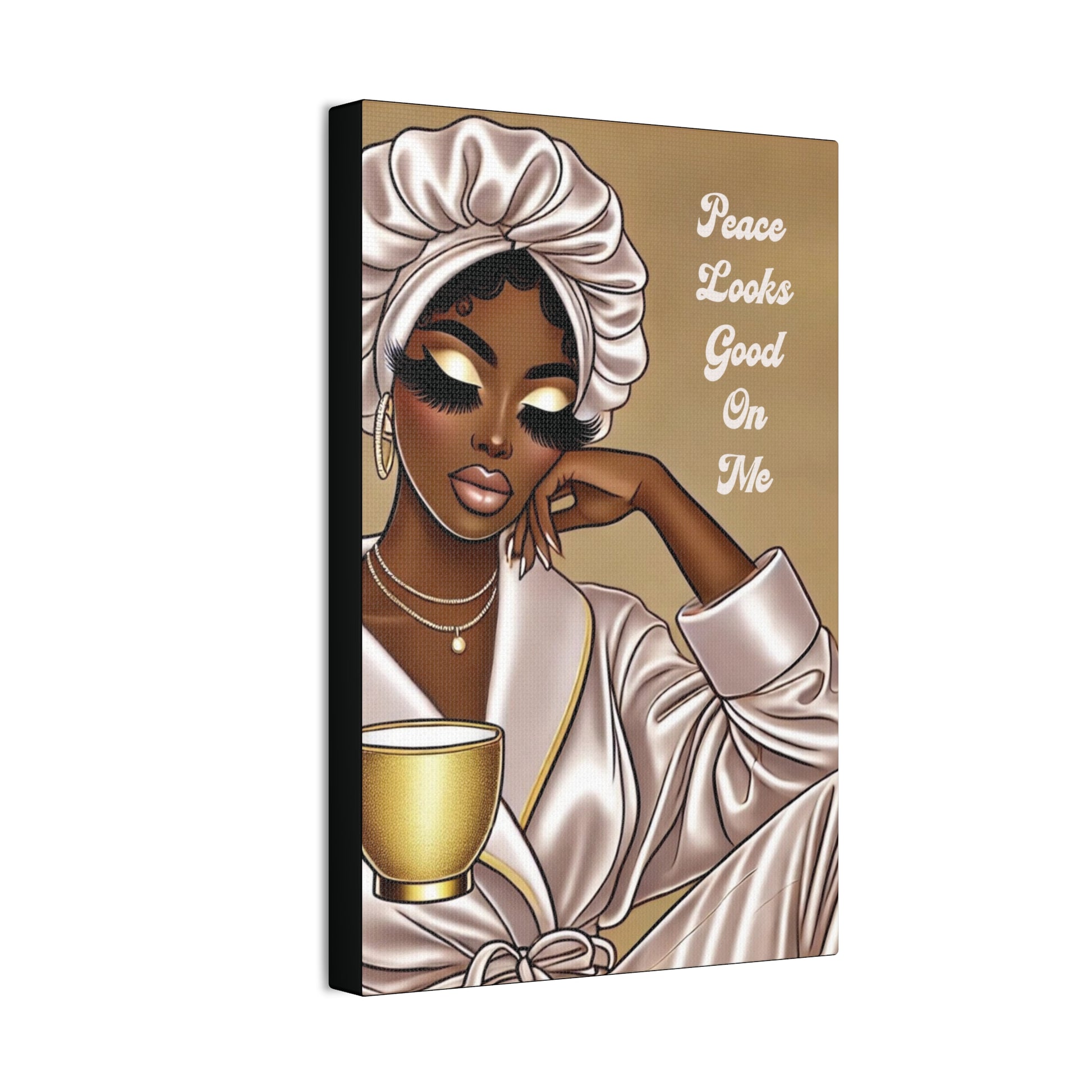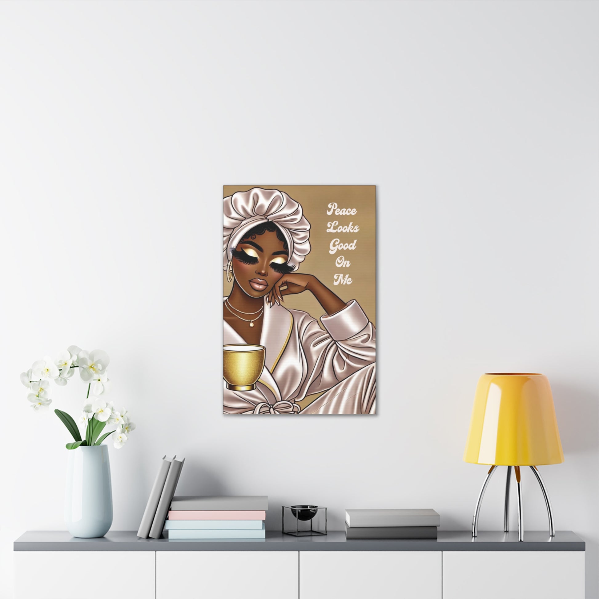 Bring beauty and calm into your space with the "Peace Looks Good on Me” canvas art—a stunning piece that radiates tranquility, confidence, and style. With its vibrant colors and captivating design, this artwork is more than just décor—it’s a statement of self-love and serenity.