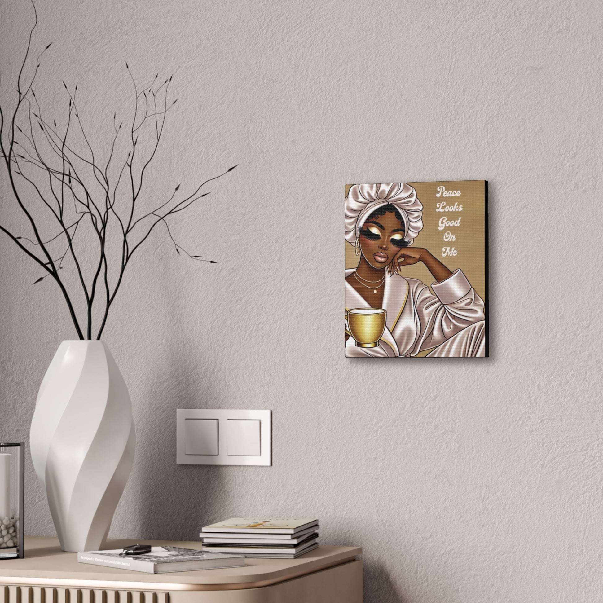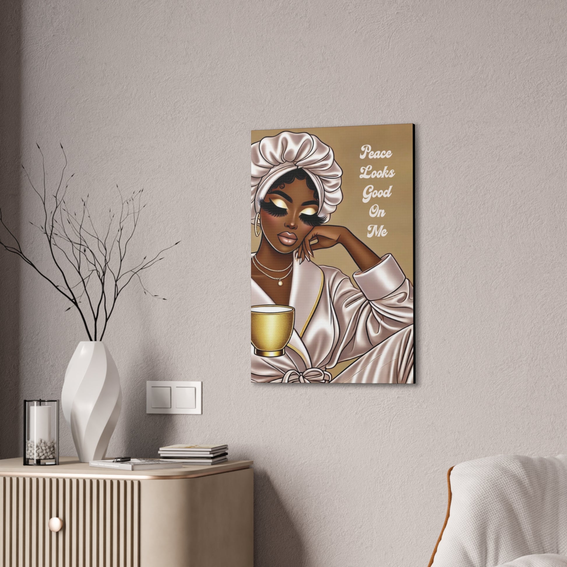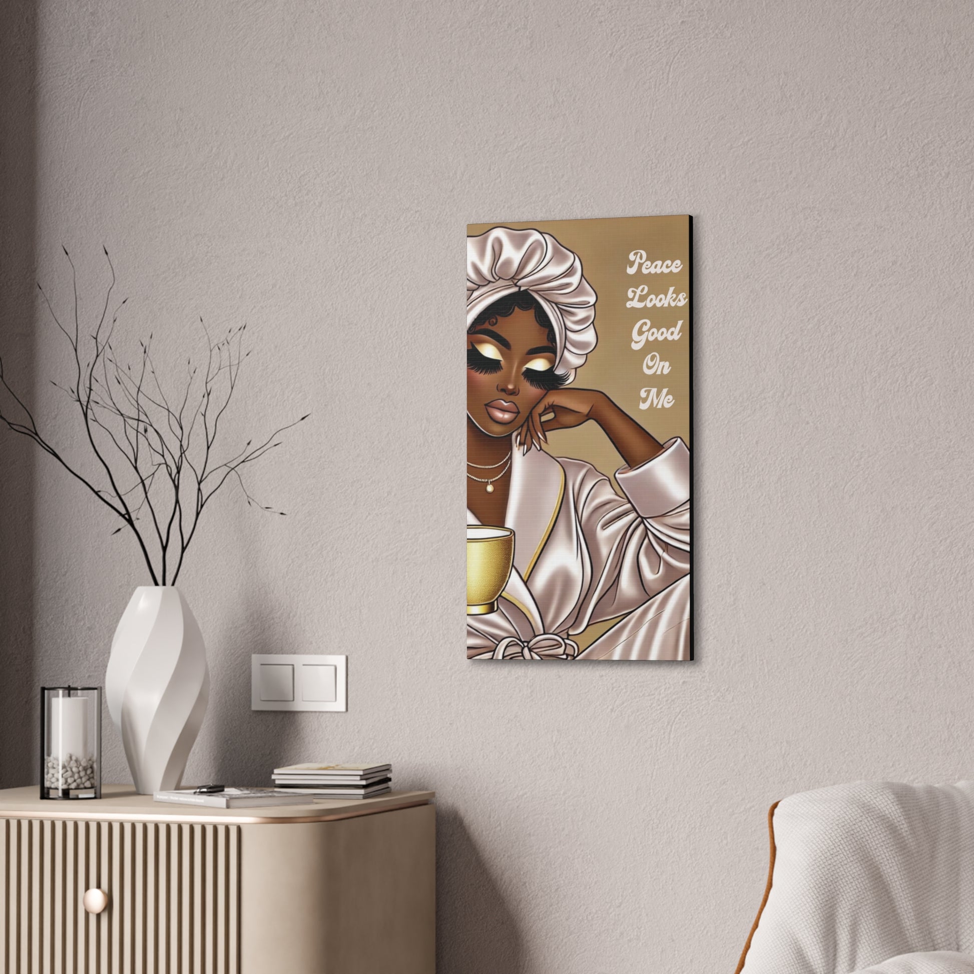 Bring beauty and calm into your space with the "Peace Looks Good on Me” canvas art—a stunning piece that radiates tranquility, confidence, and style. With its vibrant colors and captivating design, this artwork is more than just décor—it’s a statement of self-love and serenity.