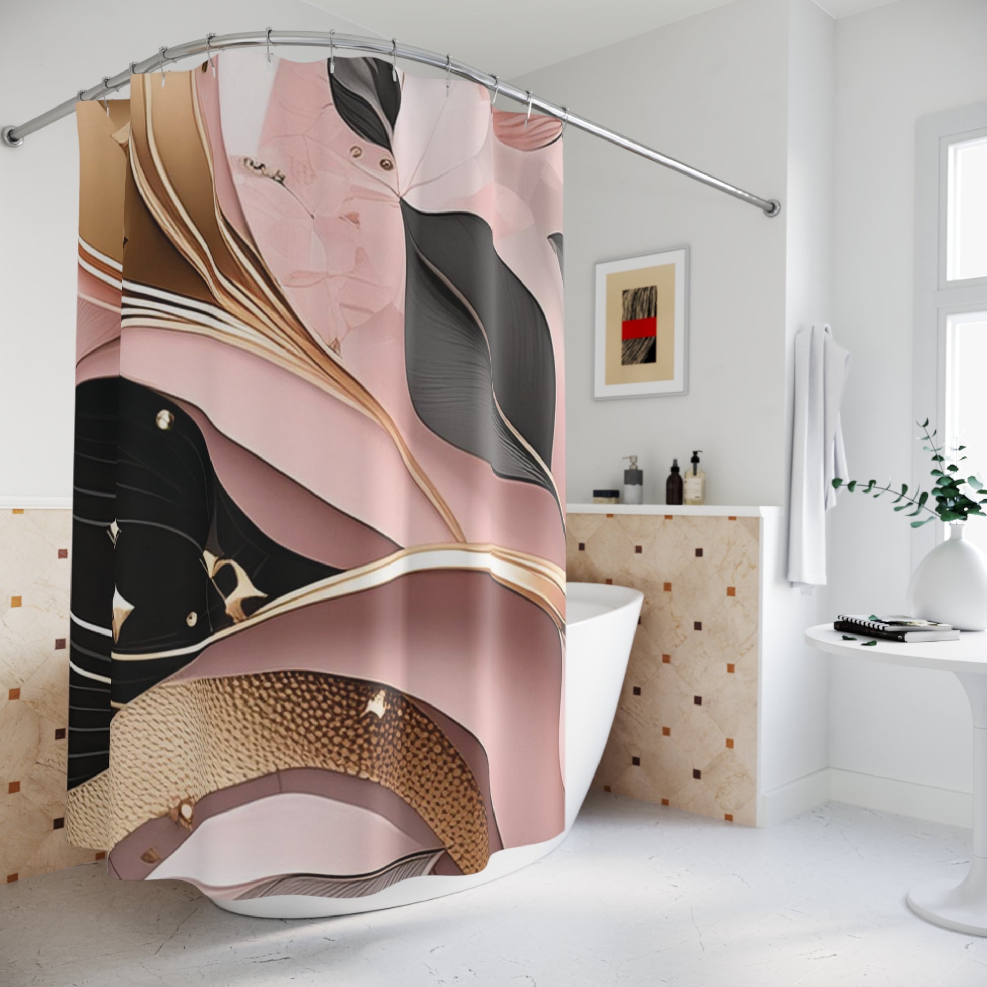 Elevate your bathroom décor with our Pink, Black, and Gold Elegant Abstract Shower Curtain. This stunning design combines rich shades of pink with striking black and luxurious gold accents, creating an original and sophisticated touch that enhances any bathroom aesthetic.