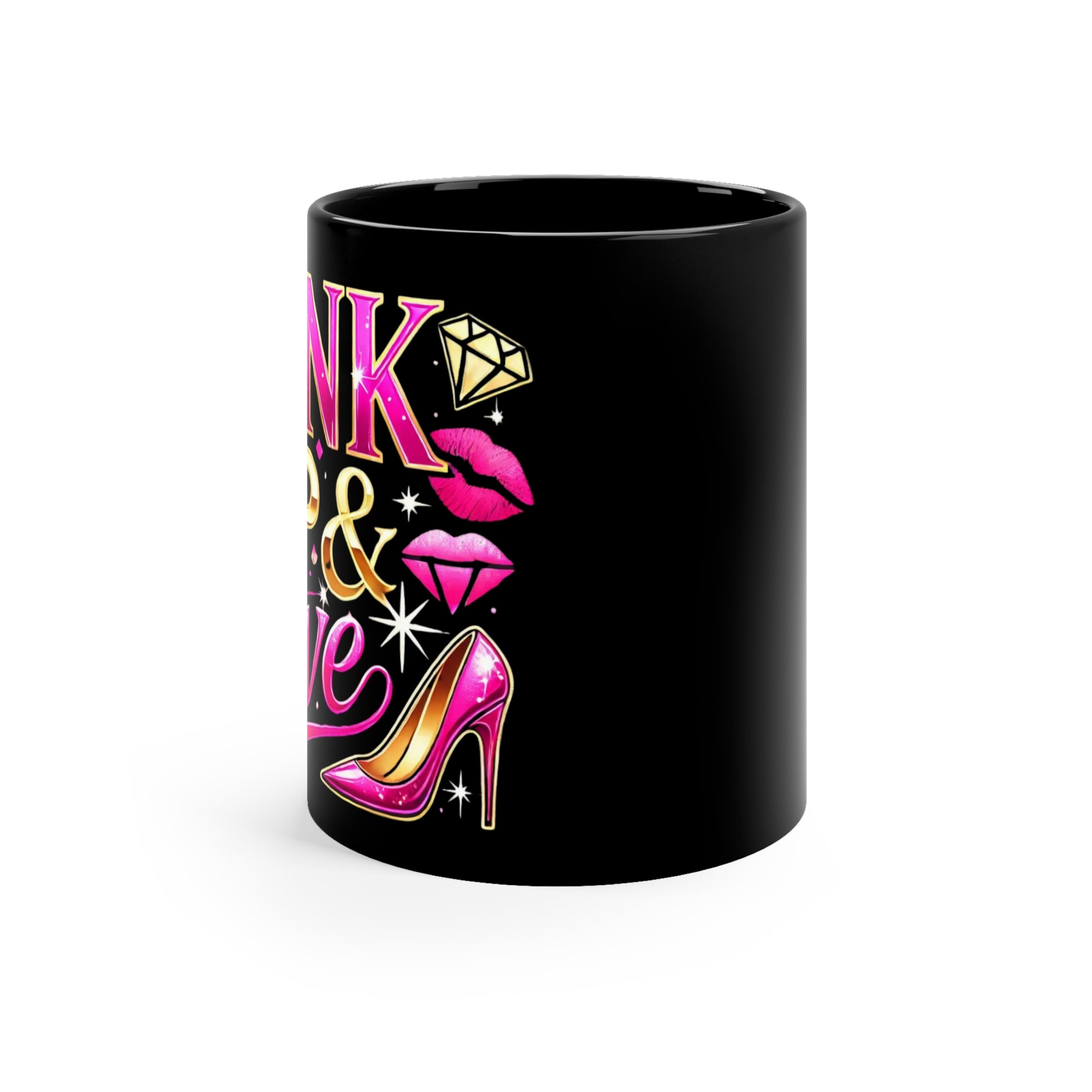 Pink, Sip & Love - Black Coffee Mug, 11oz