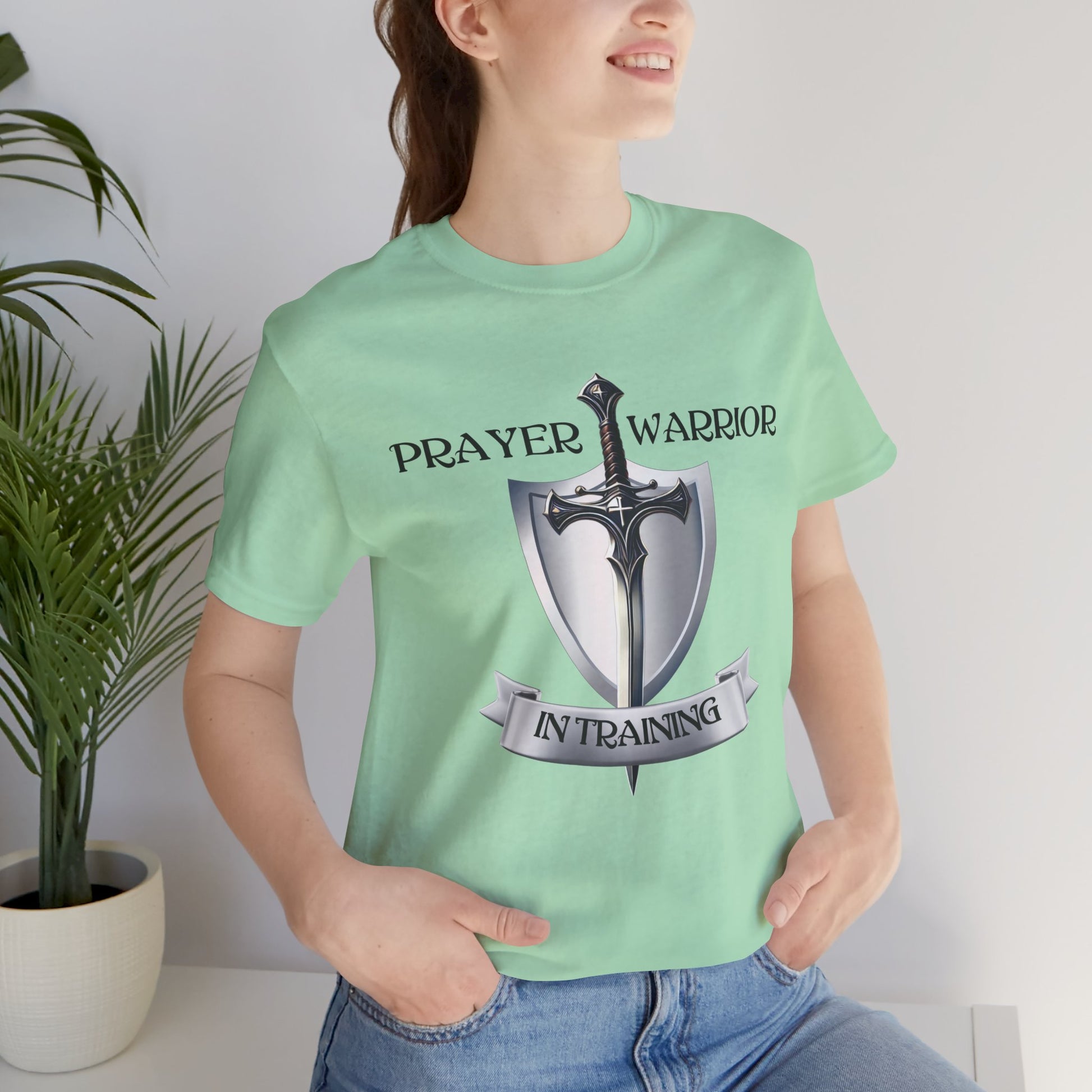 Step into your power as a Prayer Warrior with this classic "Prayer Warrior in Training" t-shirt. Designed for comfort and style, this unisex jersey short sleeve tee is crafted to feel like a well-loved favorite from the very first wear. Made from soft cotton and featuring high-quality print, it’s a shirt you'll want to wear over and over again.