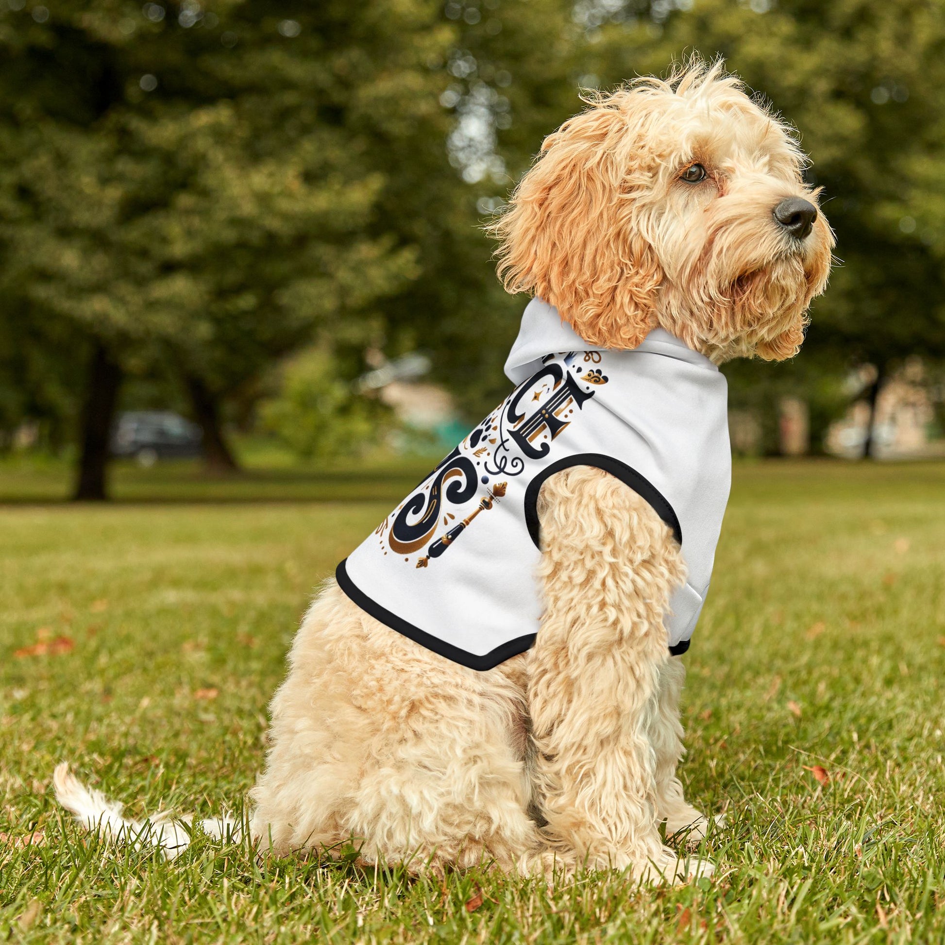Choose between chic black or crisp white ribbing to elevate your pet's look and add those extra style points. Whether it’s a cozy day at home or an outing with friends, your little pet will look adorable in every picture. The "Prince of Paws" pet hoodie is not just an accessory; it’s a statement of love and style for your beloved companion.