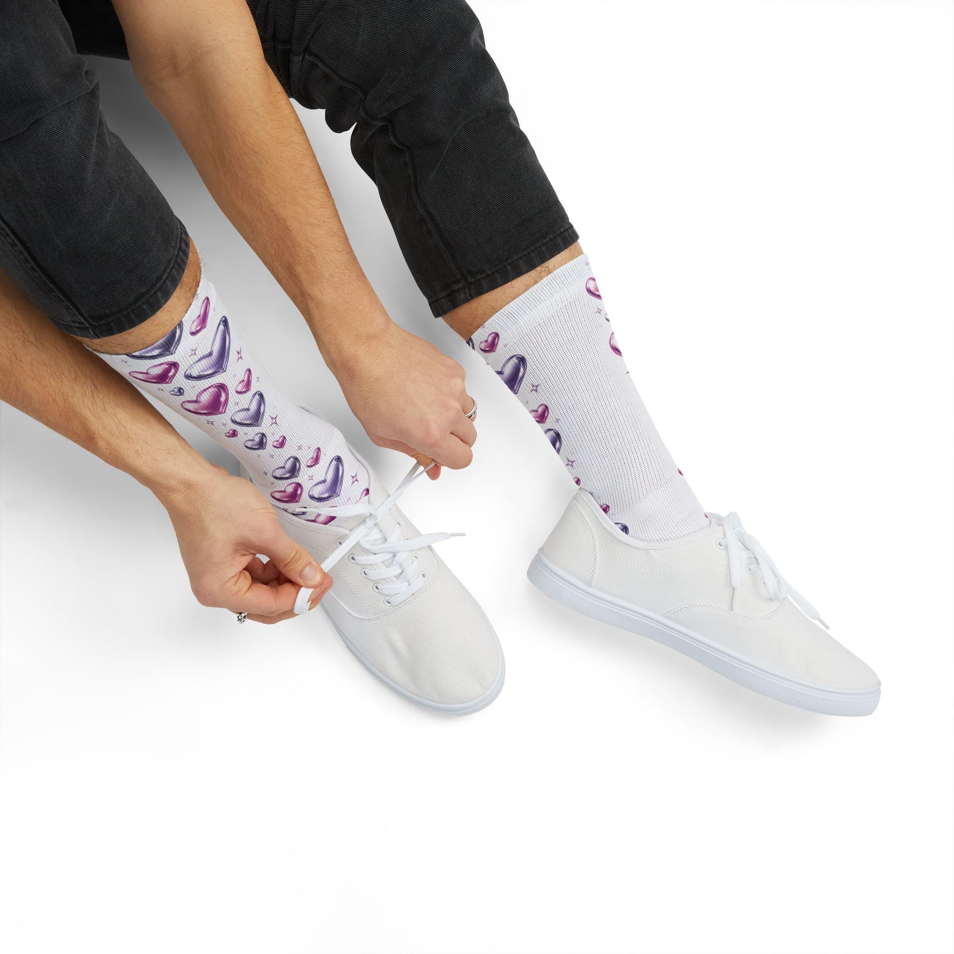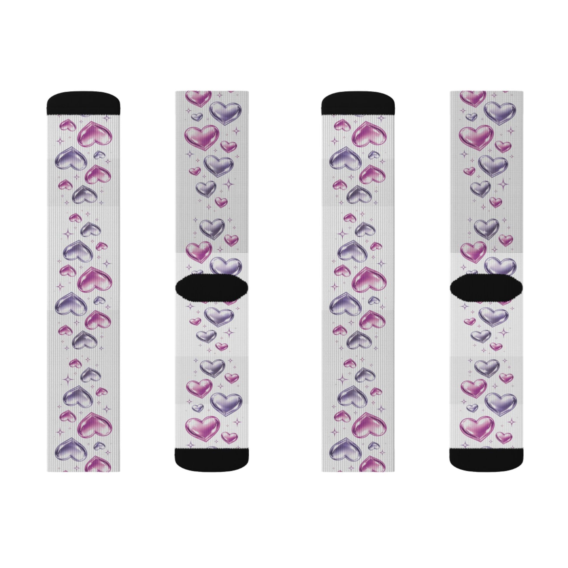 Add a pop of color and charm to your everyday look with our Purple & Pink Hearts socks. Featuring a vibrant sublimated heart design in rich purple and soft pink tones, these socks strike the perfect balance between playful and stylish—ideal for subtle elegance or bold self-expression.