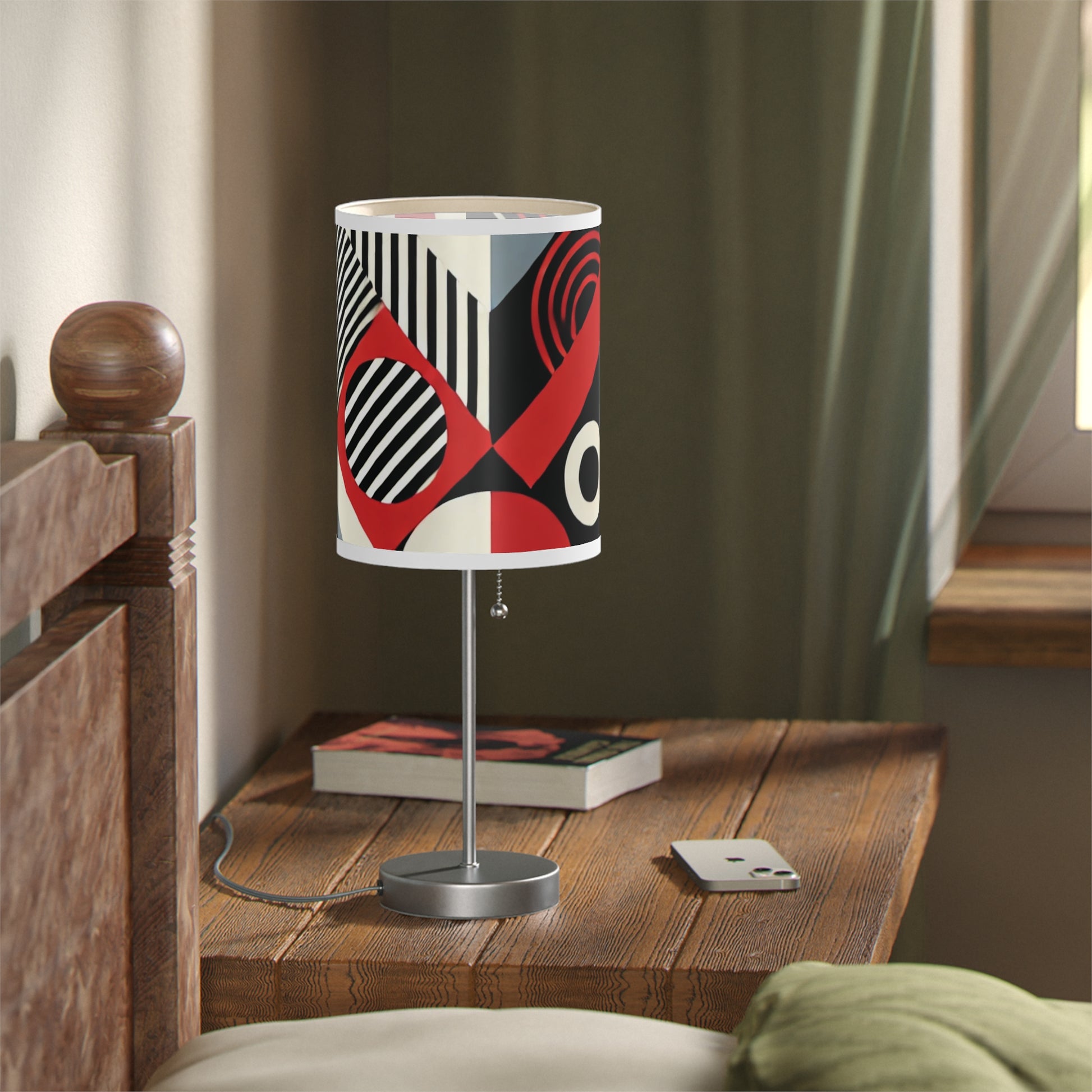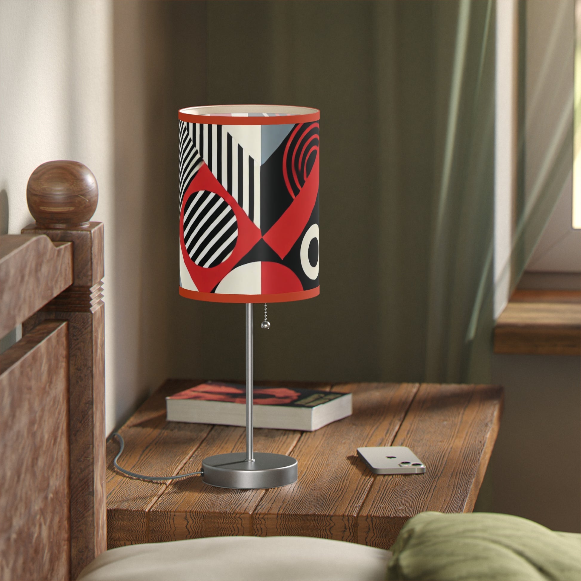 Perfect for desks, side tables, or nightstands, the Red, Black & White Abstract Lamp combines style and practicality, lighting up your home with a contemporary edge.