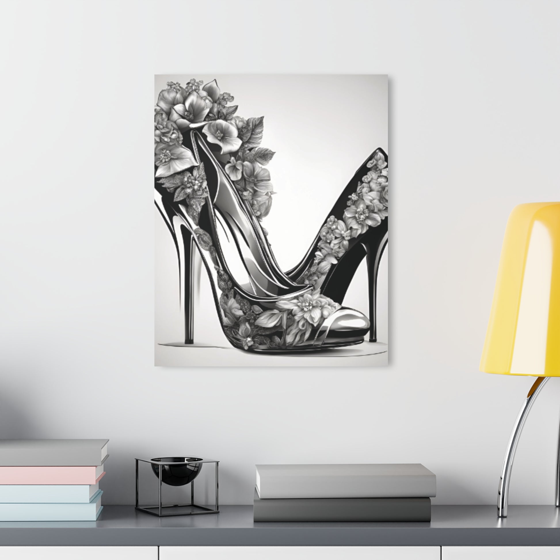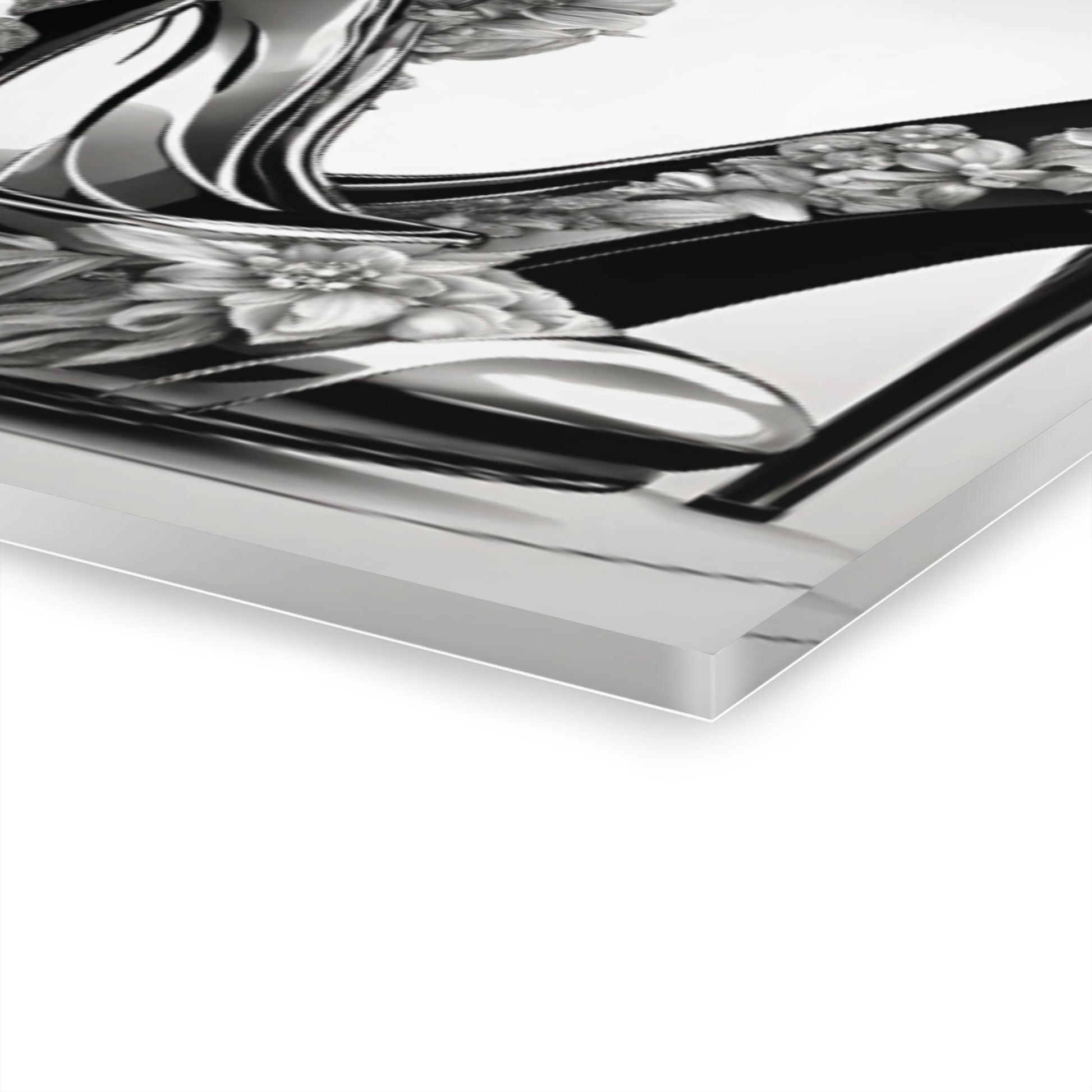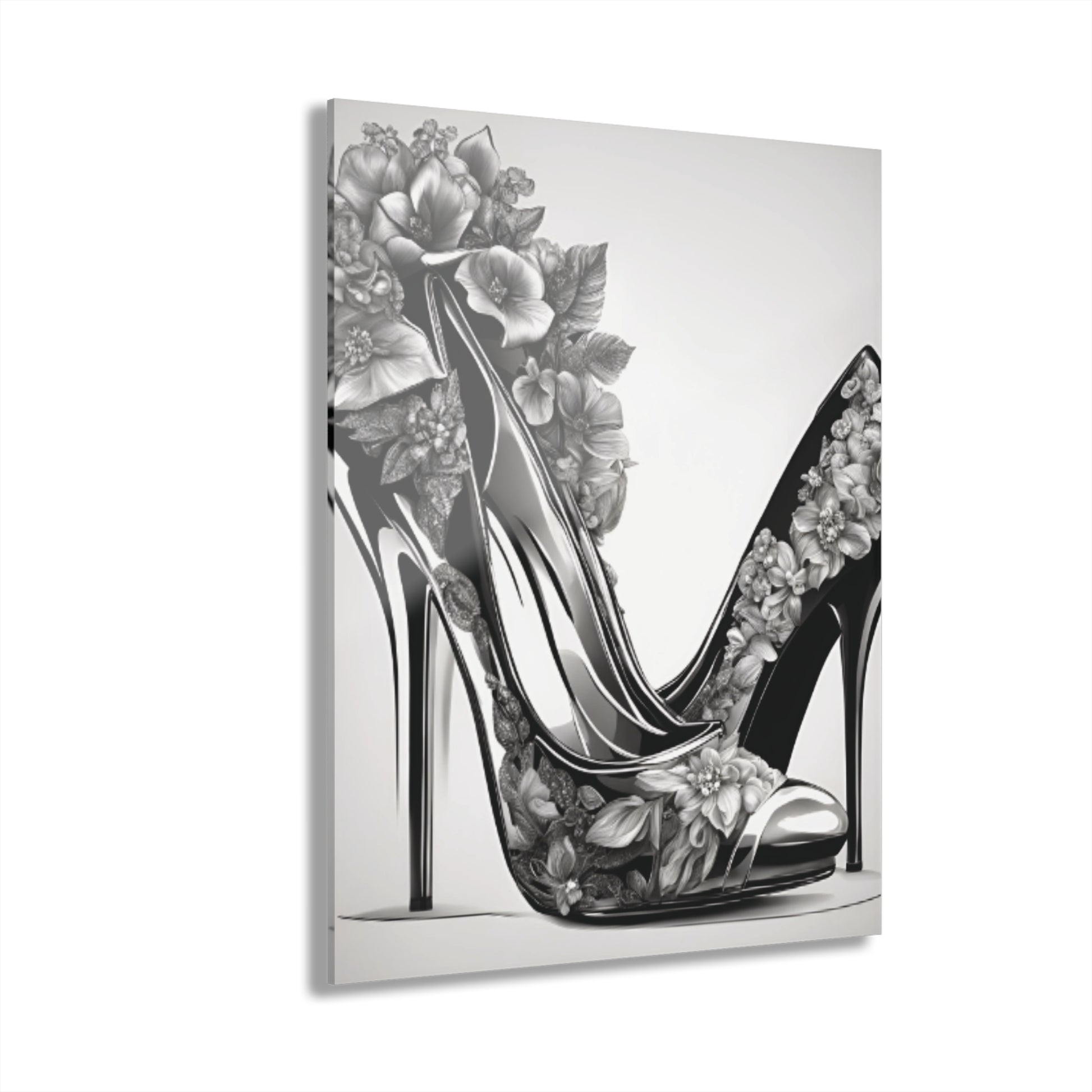 Introduce a blend of fashion and floral artistry to your space with Stiletto Art, an acrylic print that showcases a pair of elegant stiletto heels adorned with beautiful black and white flowers. This striking black-and-white design brings a classic yet artistic flair, making it a versatile decor piece that exudes sophistication. Designed to deliver art-gallery quality, Stiletto Art turns any space into a display of timeless elegance.